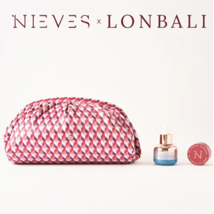 Dos imprescindibles de cuidado facial y labial, junto a un bolso pouch Lonbali DE REGALO. Una Edición Limitada, creada en exclusiva para Nieves Beauty.